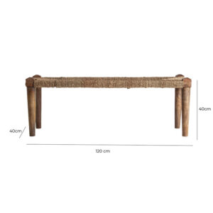 Banco Tassarolo de estilo vintage fabricado en madera de mango en color marrón combinado con fibra natural. Producto desmontable.