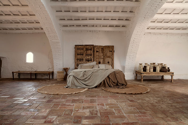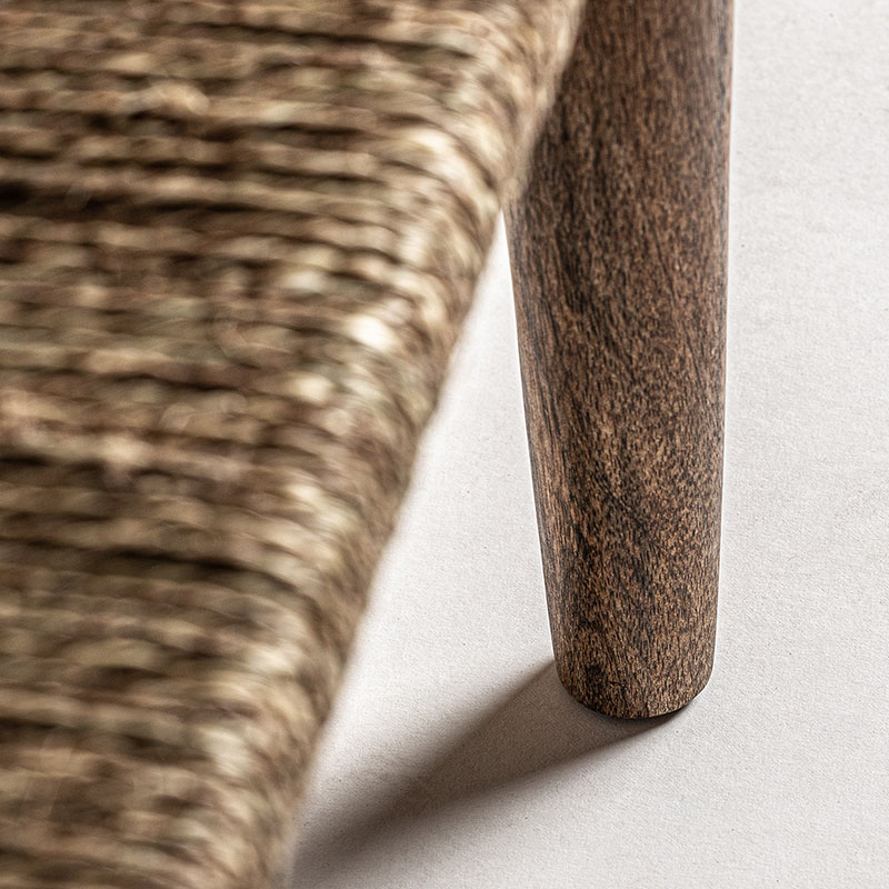 Banco Tassarolo de estilo étnico fabricado en yute en color marrón combinado con madera de mango. Producto desmontable.