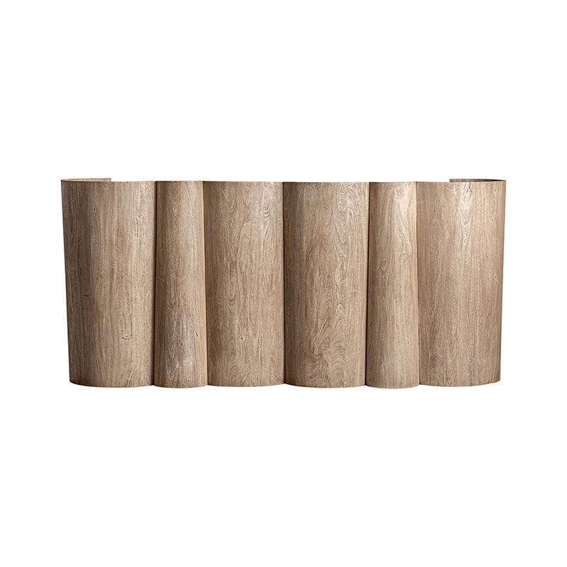 Mostrador agen de estilo colonial fabricado en madera de teka reciclada en color marrón.