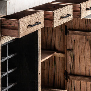 Módulo barra de bar Landshut de estilo rústico fabricado en madera recuperada en color marrón.