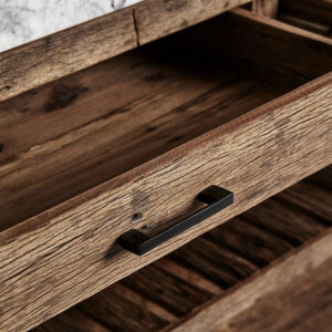 Mostrador agen de estilo colonial fabricado en madera de teka reciclada en color marrón.
