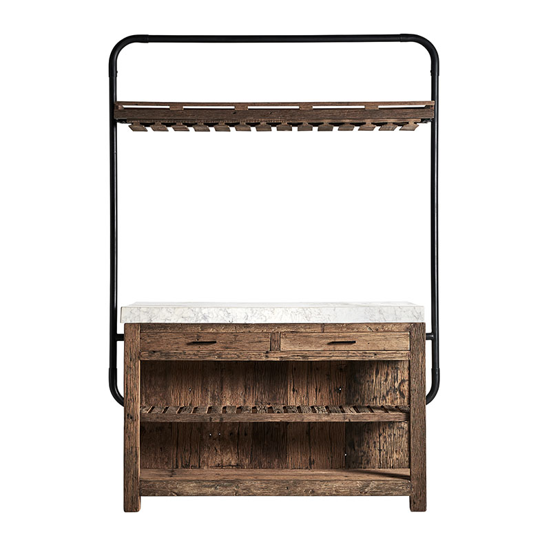 Módulo barra de bar Landshut de estilo rústico fabricado en madera recuperada en color marrón.