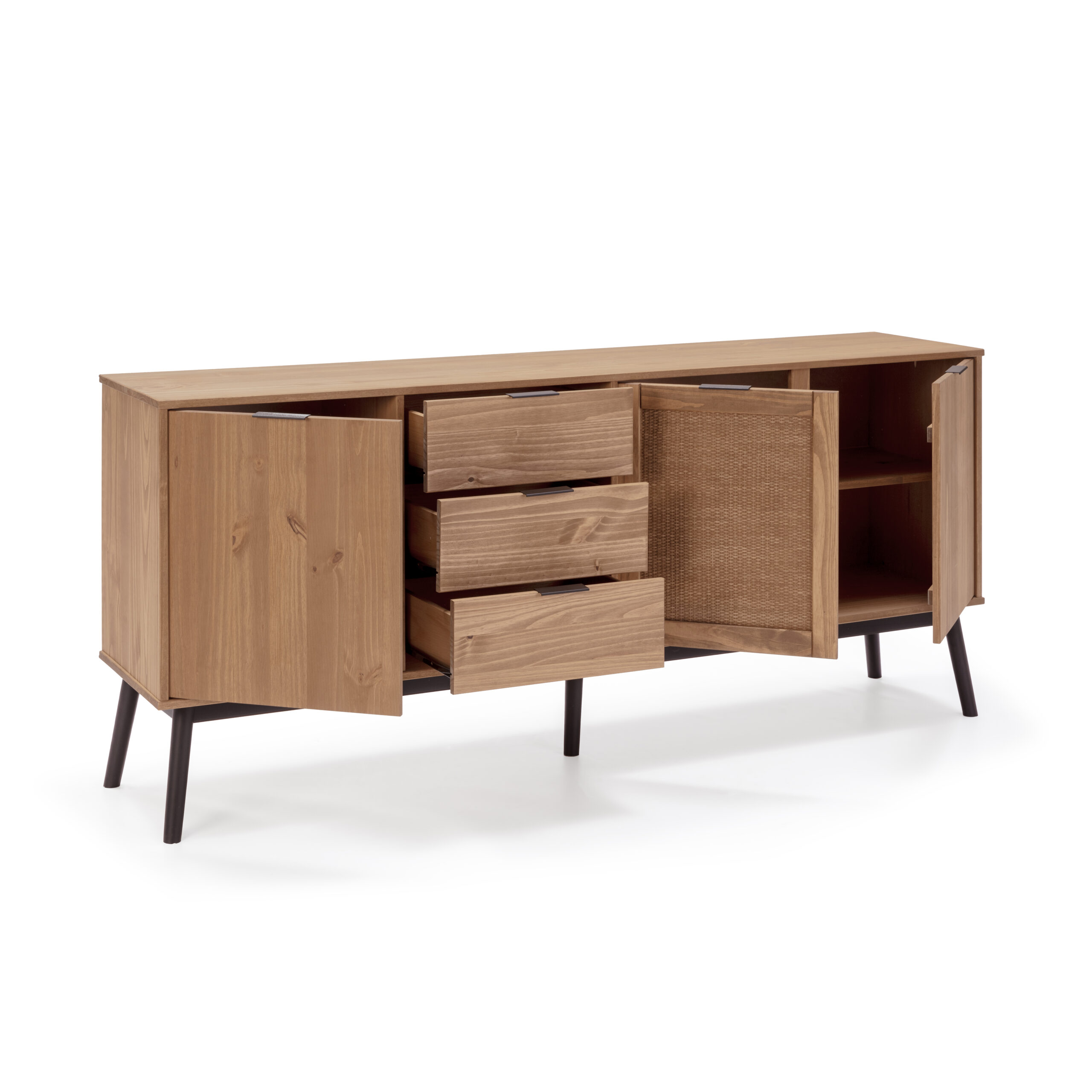 APARADOR NAIROBI 3P3C MADERA/RATTAN PIE NEGRO