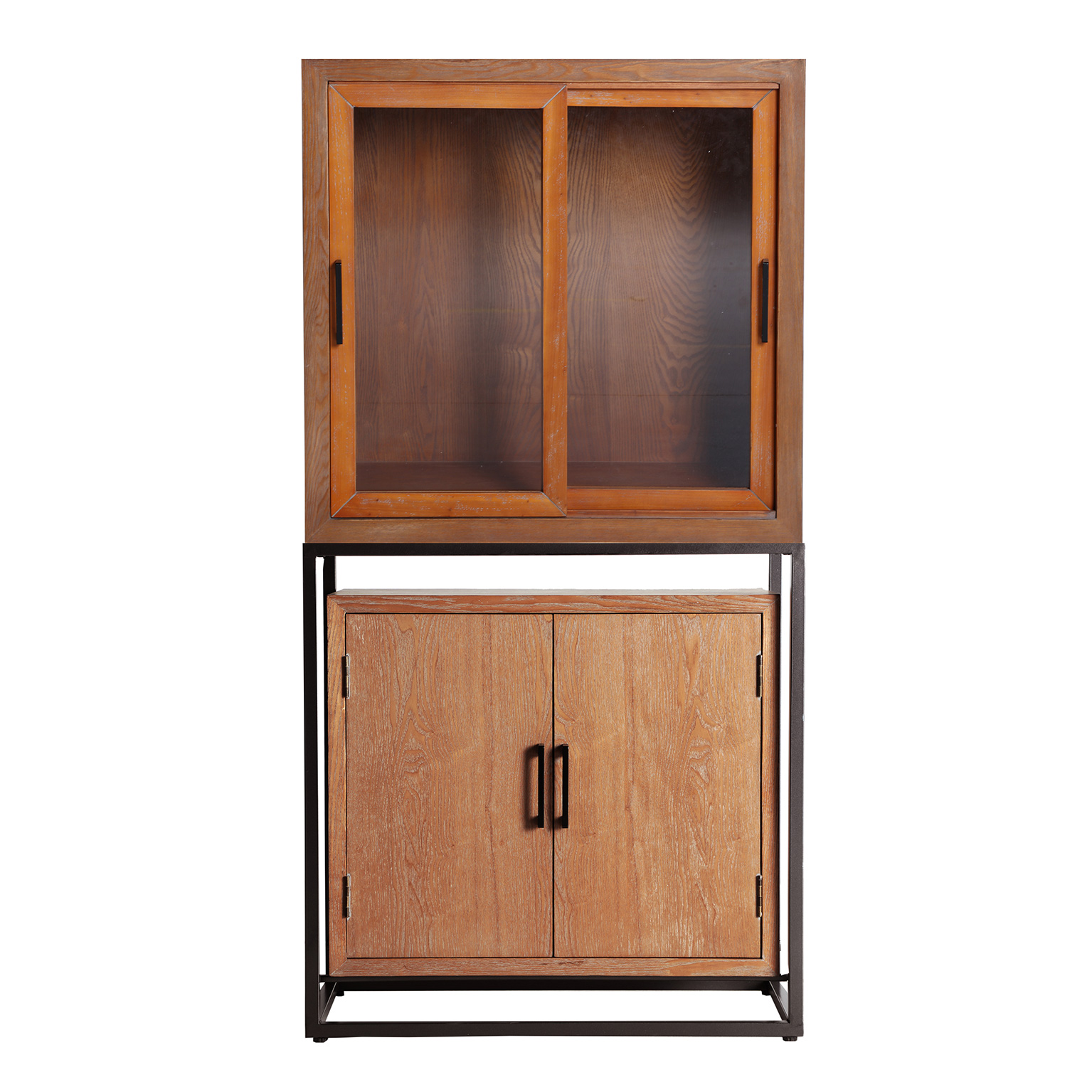 BUFFET RECTANGULAR TYLER, EN COLOR NATURAL/PLATA ENVEJECIDO, DE ESTILO INDUSTRIAL. FABRICADO EN MADERA DE ABETO, COMBINADO CON HIERRO Y MADERA DM. MÓDULO CON LA REF 26649. PRODUCTO DESMONTABLE.