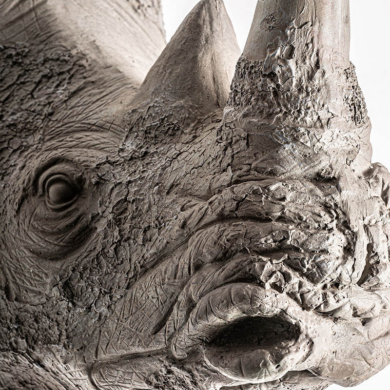 Busto rinoceronte de estilo nórdico fabricado en resina en color gris con acabado envejecido.