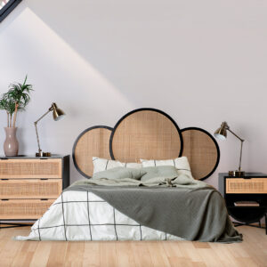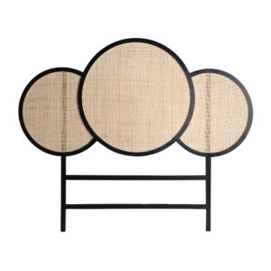 CABEZAL BEILEN, EN COLOR NEGRO/NATURAL, DE ESTILO SHABBY CHIC. FABRICADO EN MADERA DE PINO, COMBINADO CON RATÁN Y MADERA DM. PRODUCTO DESMONTABLE.