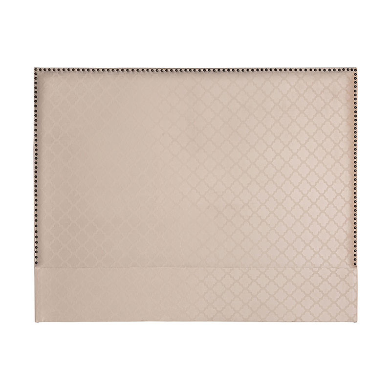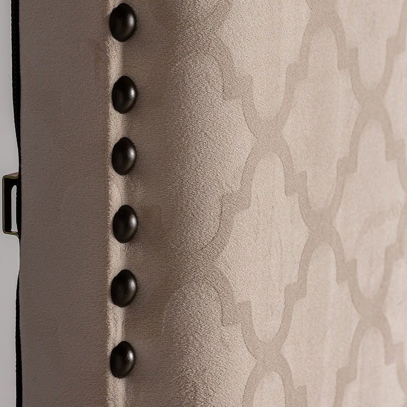 Cabezal buk de estilo art deco, fabricado en madera de pino en color beige con acabado estampado, combinado con terciopelo.