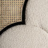 Cabezal prati bouclé de estilo colonial fabricado en madera de pino en color negro combinado con ratán en color marrón con acabado claro y algodón bouclé en color beige.