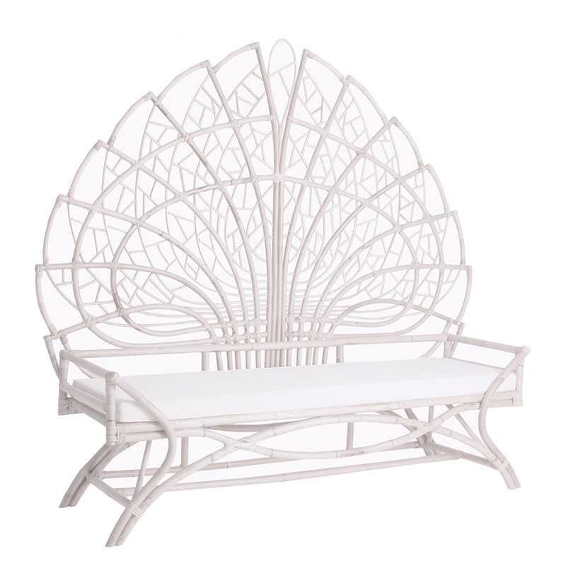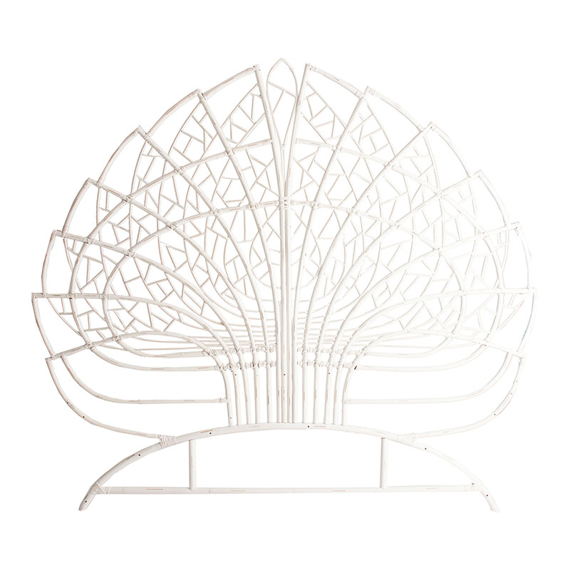 Cabezal randa, en color blanco, de estilo contemporáneo. Fabricado en ratán.