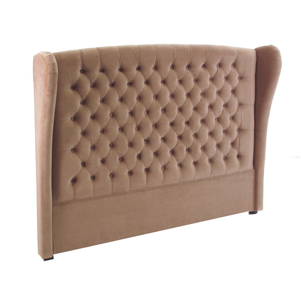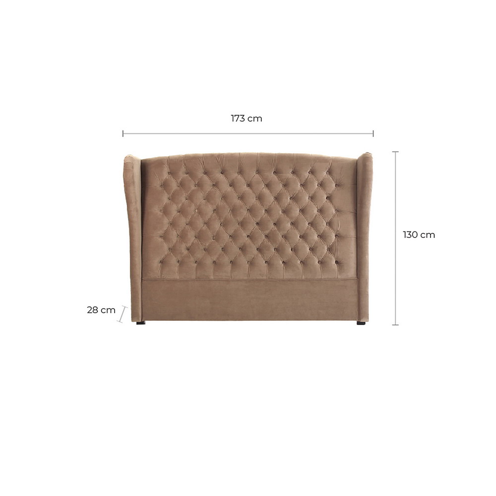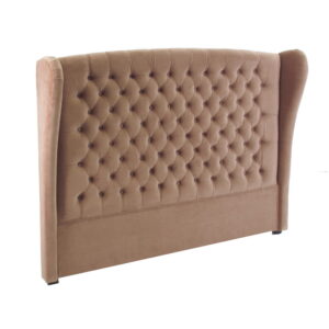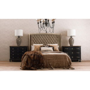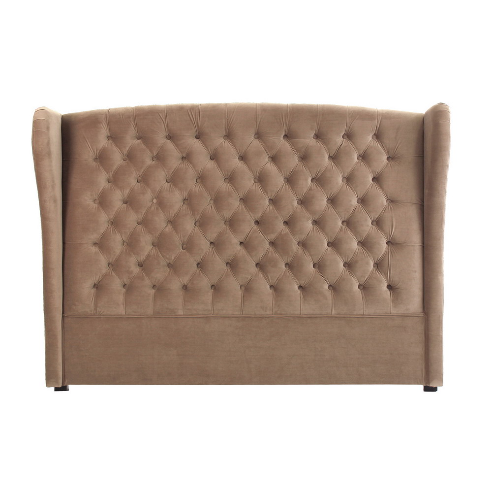 Cabezal prati bouclé de estilo colonial fabricado en madera de pino en color negro combinado con ratán en color marrón con acabado claro y algodón bouclé en color beige.