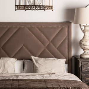 Cabezal staw, en color beige, de estilo provenzal. Fabricado en madera de pino, combinado con terciopelo y espuma.