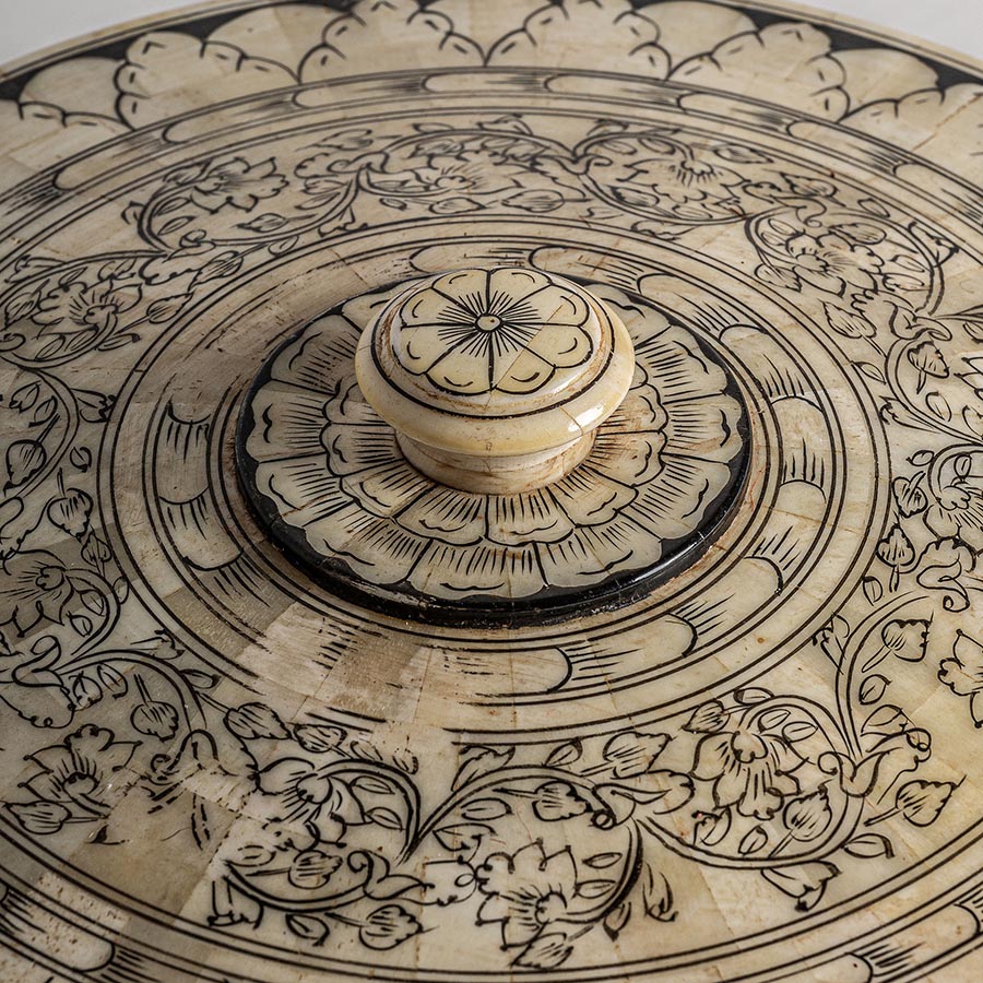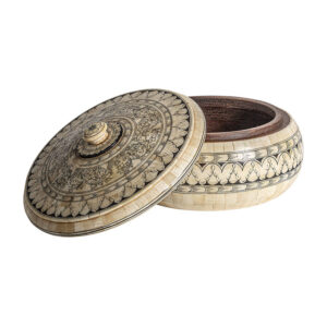 Caja oval neal de estilo art deco fabricado en resina en color beige.