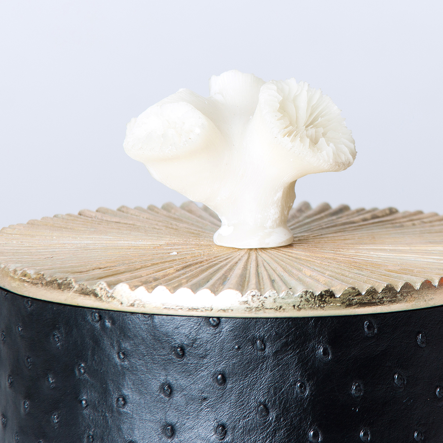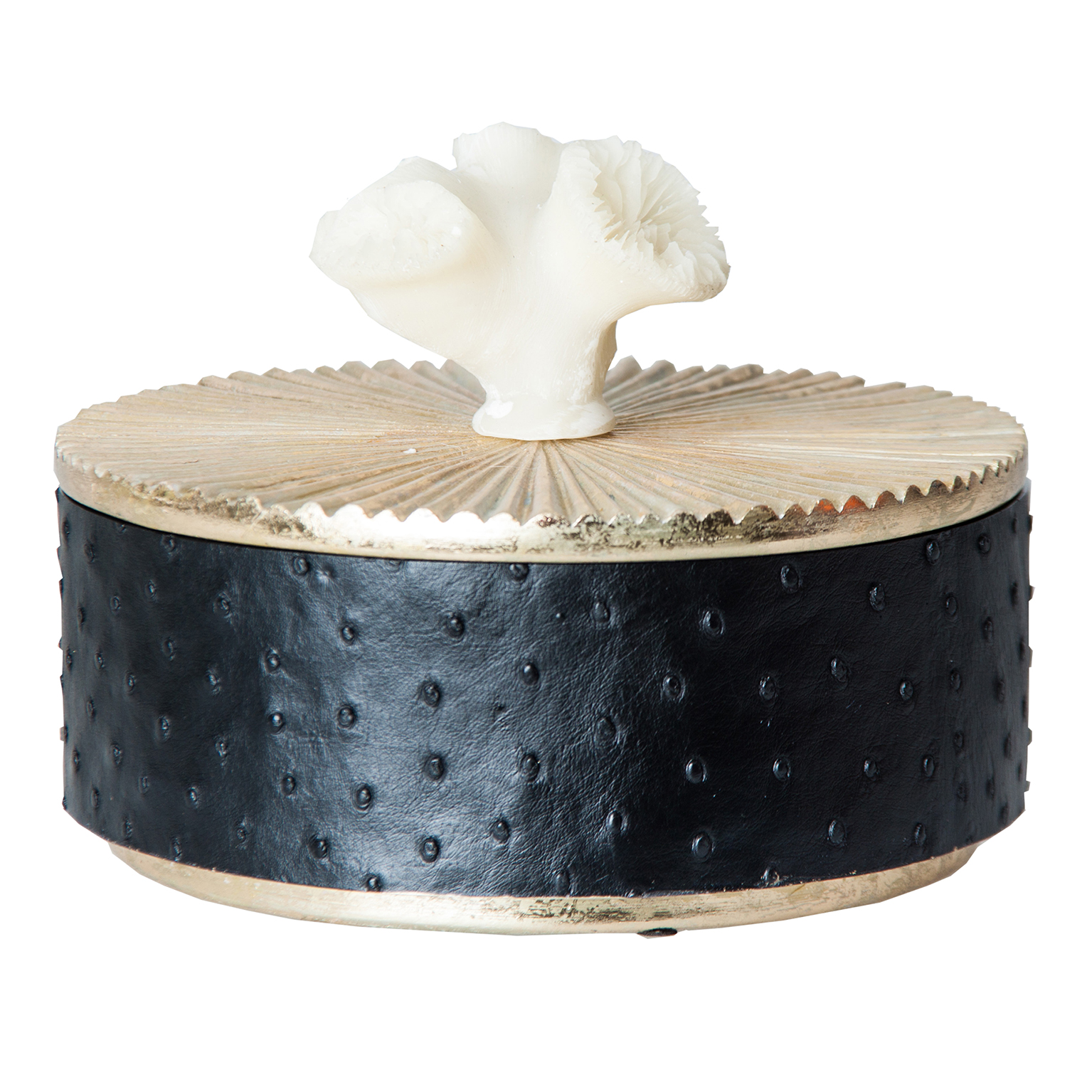 CAJA QUINN, EN COLOR NEGRO/BLANCO/ORO, DE ESTILO NÓRDICO. FABRICADO EN RESINA, COMBINADO CON CONCHA.