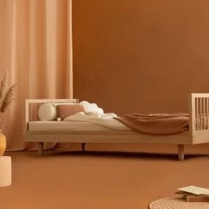 La cama adulto Pure de madera de roble maciza es la combinación perfecta para hacer evolucionar el cuarto de tus kids en un espacio acogedor y elegante.