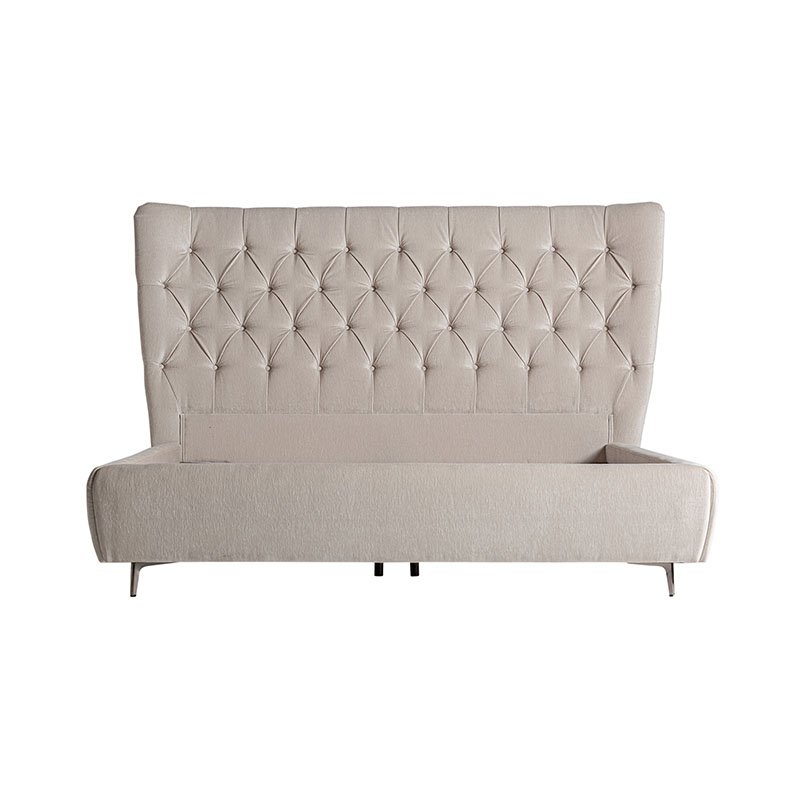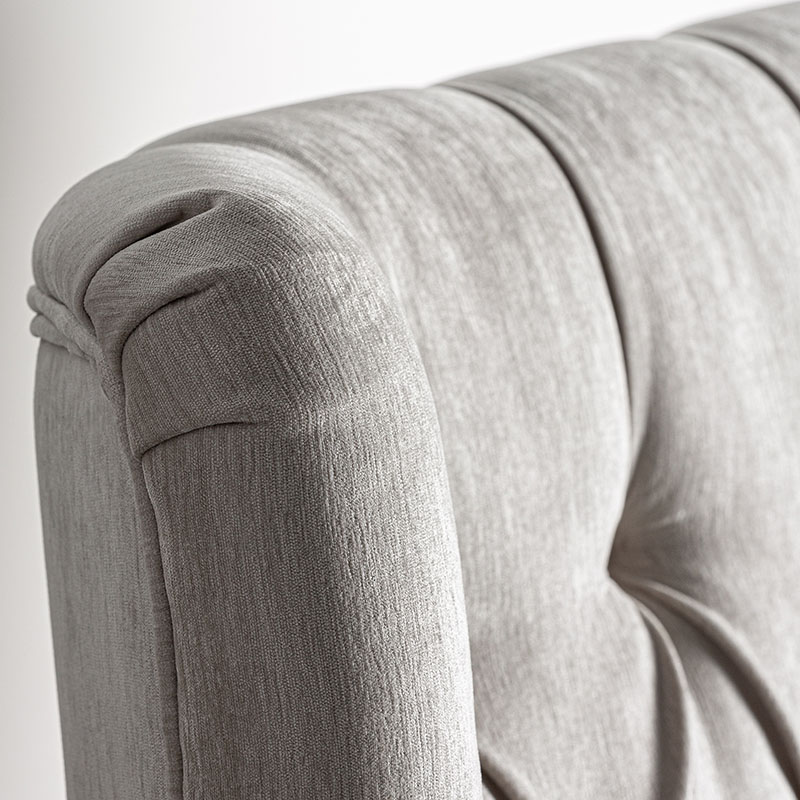 Cama Bend de estilo provenzal fabricado en poliéster en color gris combinado con madera de pino en color gris y espuma. Producto desmontable.