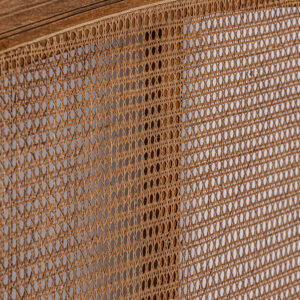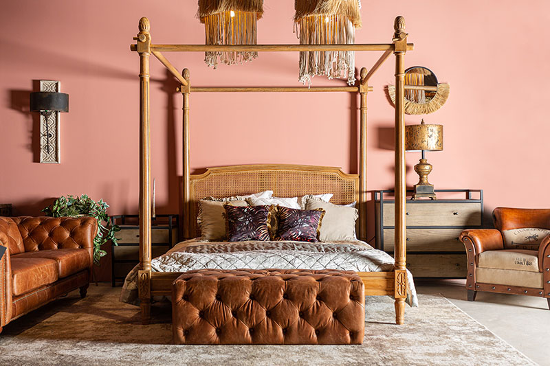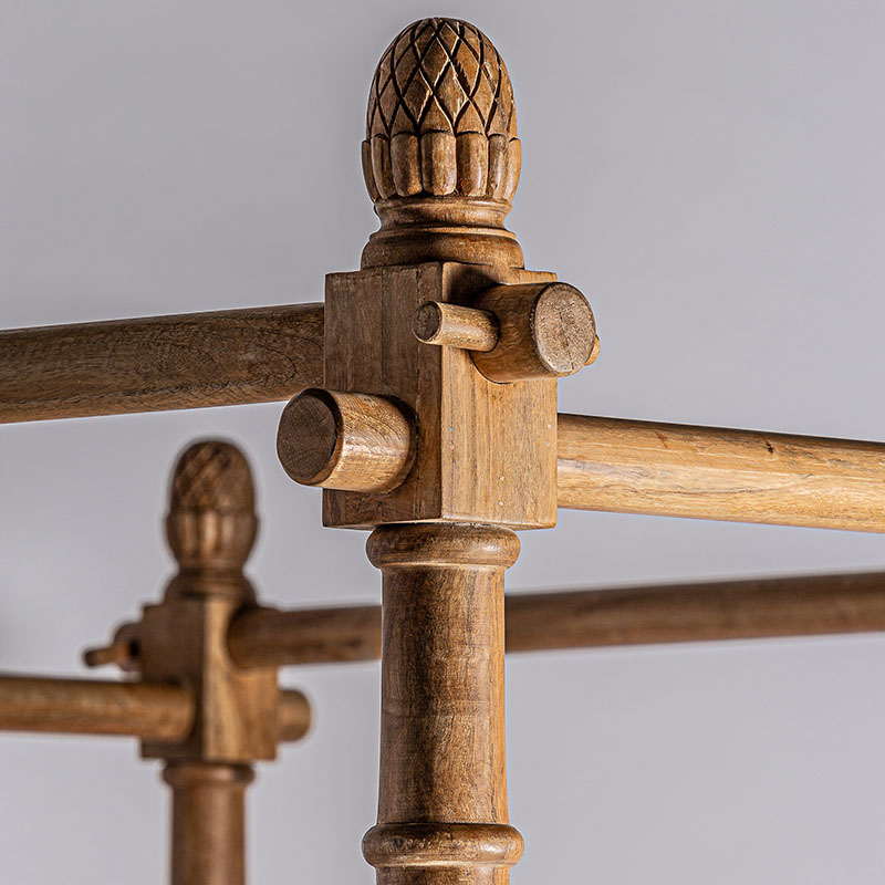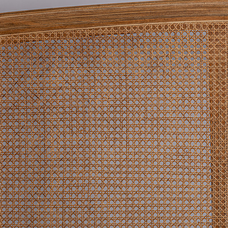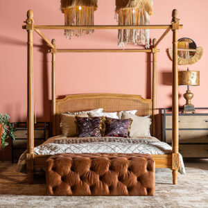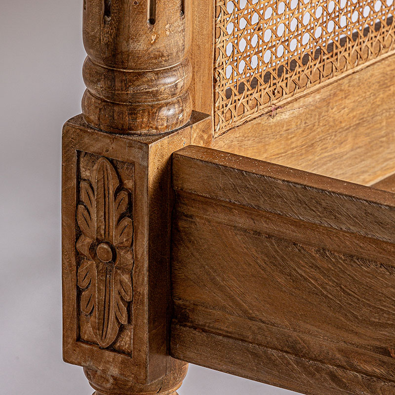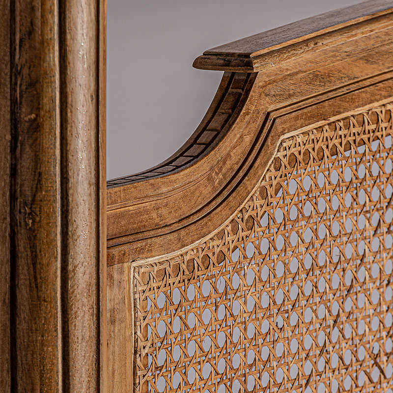 Cama con dossel susice, en color natural, de estilo étnico. Fabricado en madera de mango, combinado con ratán. Producto desmontable.