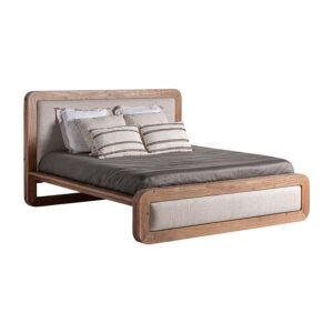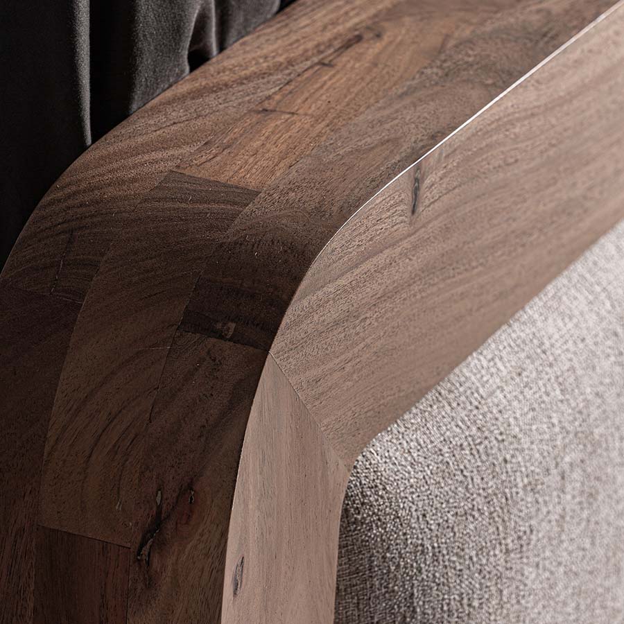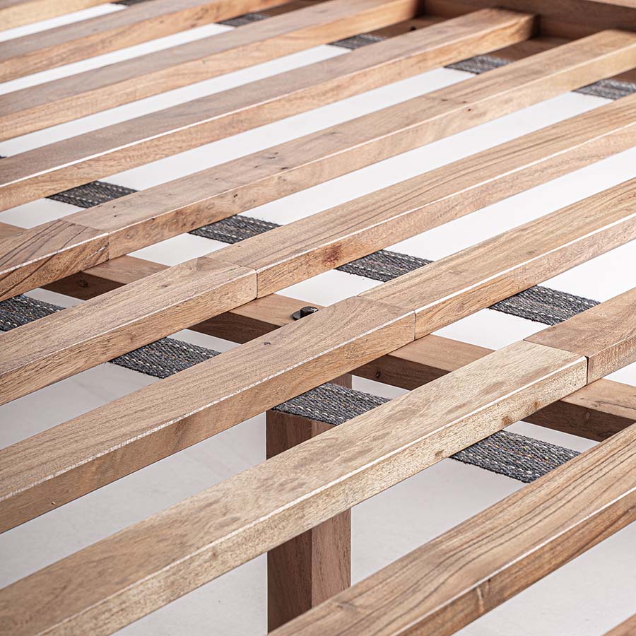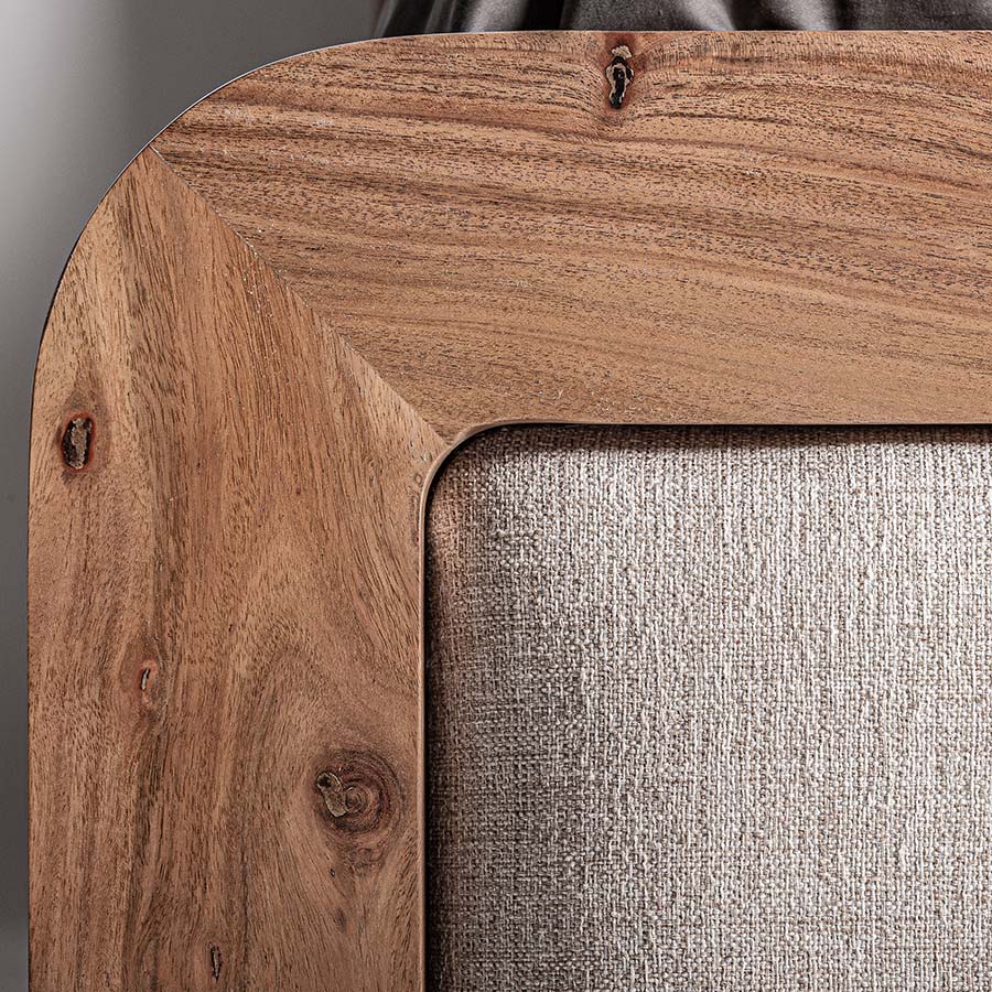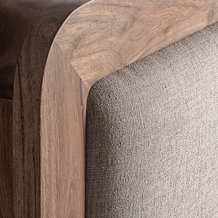 Cama dangy de estilo clásico fabricado en madera de acacia en color marrón combinado con acrílico y poliéster en color beige con acabado jaspeado.