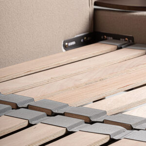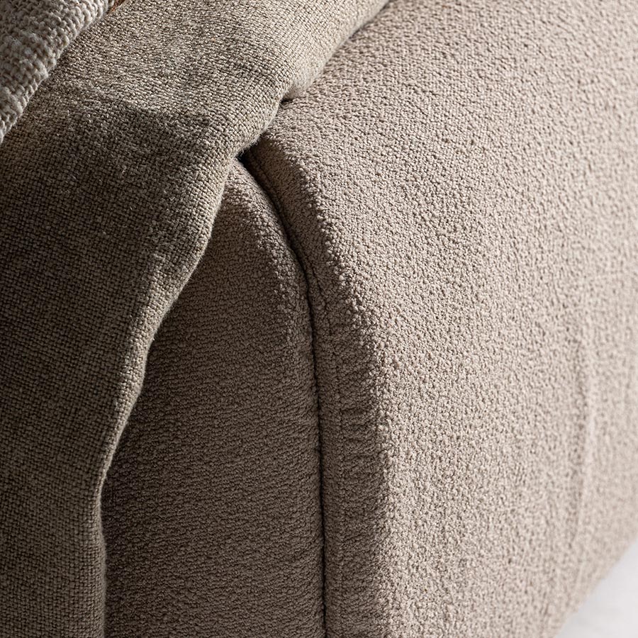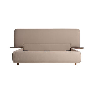 Cama dayton de estilo provenzal fabricado en lino en color beige combinado con madera de pino y espuma. Producto desmontable.