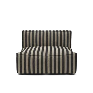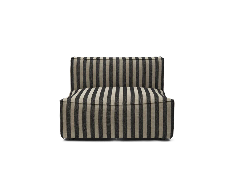 La forma acogedora, inspirada en un puf, de nuestro sofá bajo Catena tiene unas dimensiones generosas para lograr una relajación y comodidad totales: lo llamamos «vida baja». El nombre Catena está inspirado en la curva catenaria, una forma de U que adopta una cadena o un cable cuando se apoya sólo en sus extremos, y que se refleja en las suaves curvas y las costuras pespunteadas del sofá Catena. Los acogedores diseños modulares están fabricados con una innovadora espuma microcelular que garantiza el máximo confort y durabilidad. La expresión limpia y clásica de este tejido a rayas ha sido diseñada en colaboración con el Museo de Arte Moderno de Luisiana. Inspirada en las líneas gráficas y el discreto modernismo de la arquitectura icónica de Luisiana, la raya clásica pero audaz refleja los omnipresentes listones de madera y los marcos de ventanas negros distintivos de Luisiana, al igual que la discreta combinación de colores negro y arena, mientras que la tela texturizada a base de lana intriga tu sentido del tacto.
