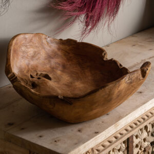 CENTRO DE MESA TASKENT, EN COLOR NATURAL ENVEJECIDO, DE ESTILO ÉTNICO. FABRICADO EN MADERA TROPICAL.