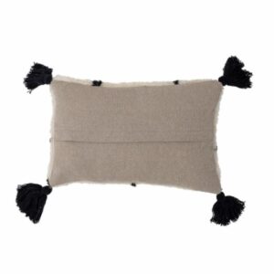 El cojín Ayn es un cojín rectangular más pequeño en mezcla de lana capitoné. Tiene un tono natural con detalles y borlas en negro para un bonito contraste. Perfecto para mezclar y combinar con otros cojines para conseguir ese aspecto acogedor.