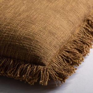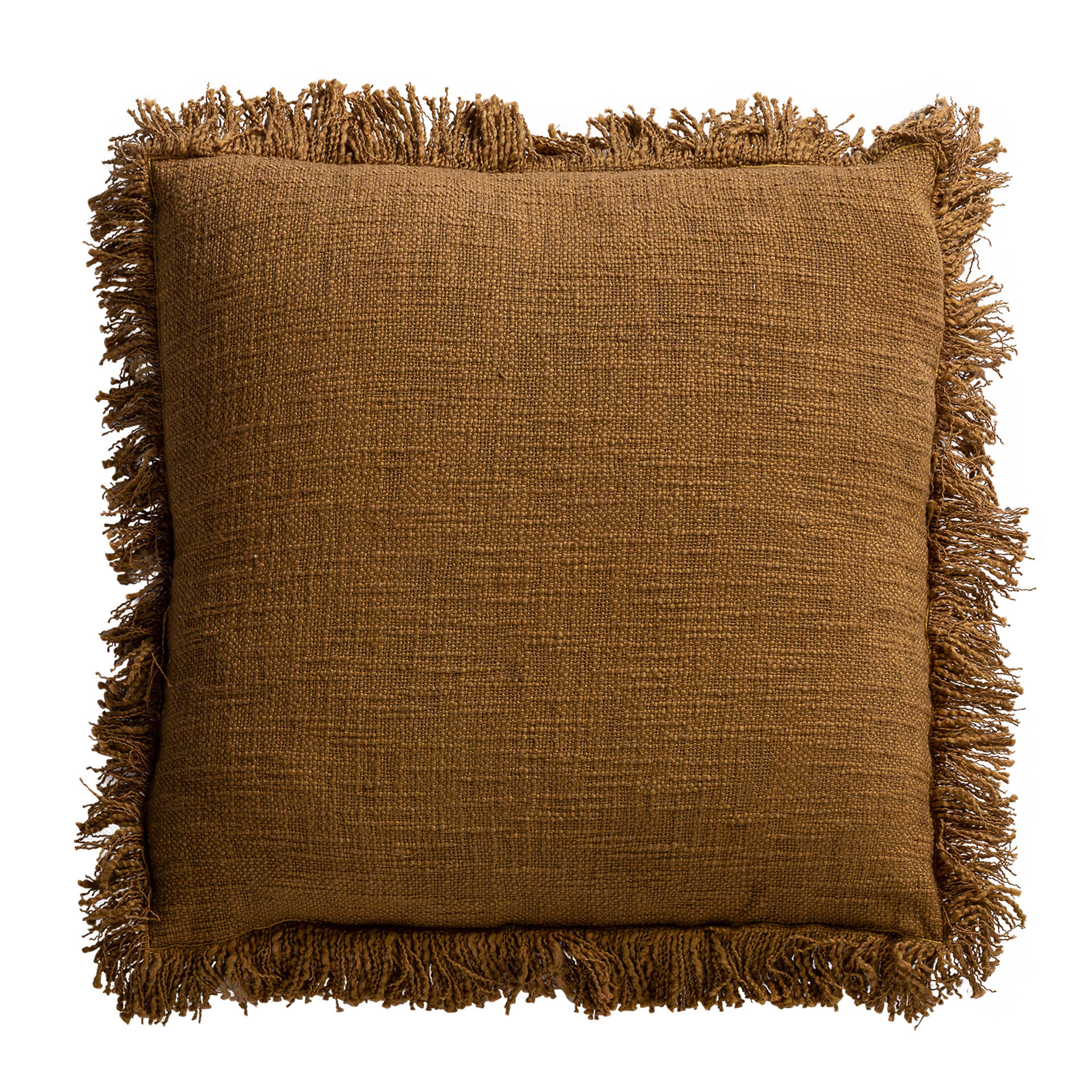 COJÍN BLEGH, EN COLOR OCRE, DE ESTILO CLÁSICO. FABRICADO EN TERCIOPELO, COMBINADO CON ALGODÓN Y POLIÉSTER.
