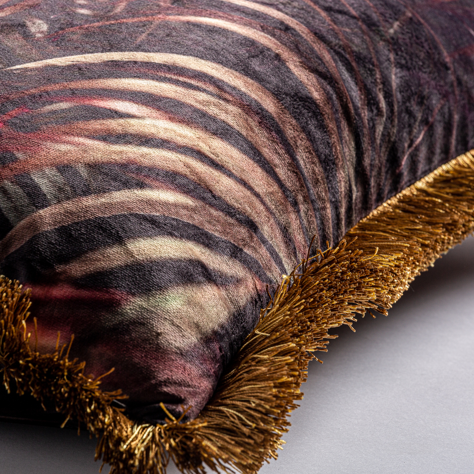 COJÍN CUADRADO CEYHUN, EN COLOR TONOS OSCUROS, DE ESTILO CONTEMPORÁNEO. FABRICADO EN TERCIOPELO, COMBINADO CON PLUMAS.