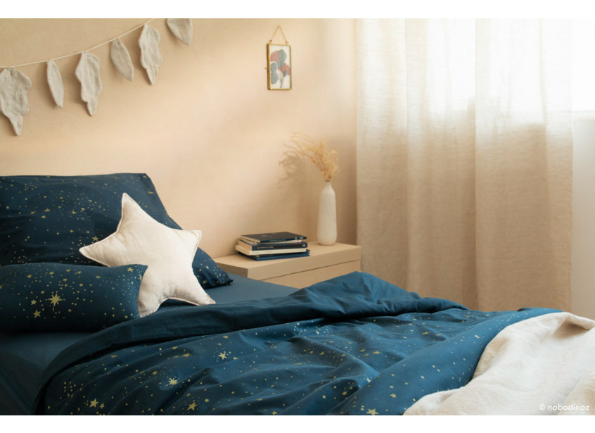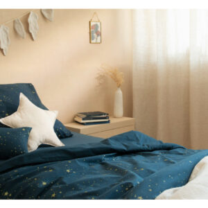 Gracias a su perfecto dominio del acabado de los tejidos, Nobodinoz ha conseguido transformar el lino en un tejido suave y refinado. El cojín de estrellas es cómodo y divertido a la vez.