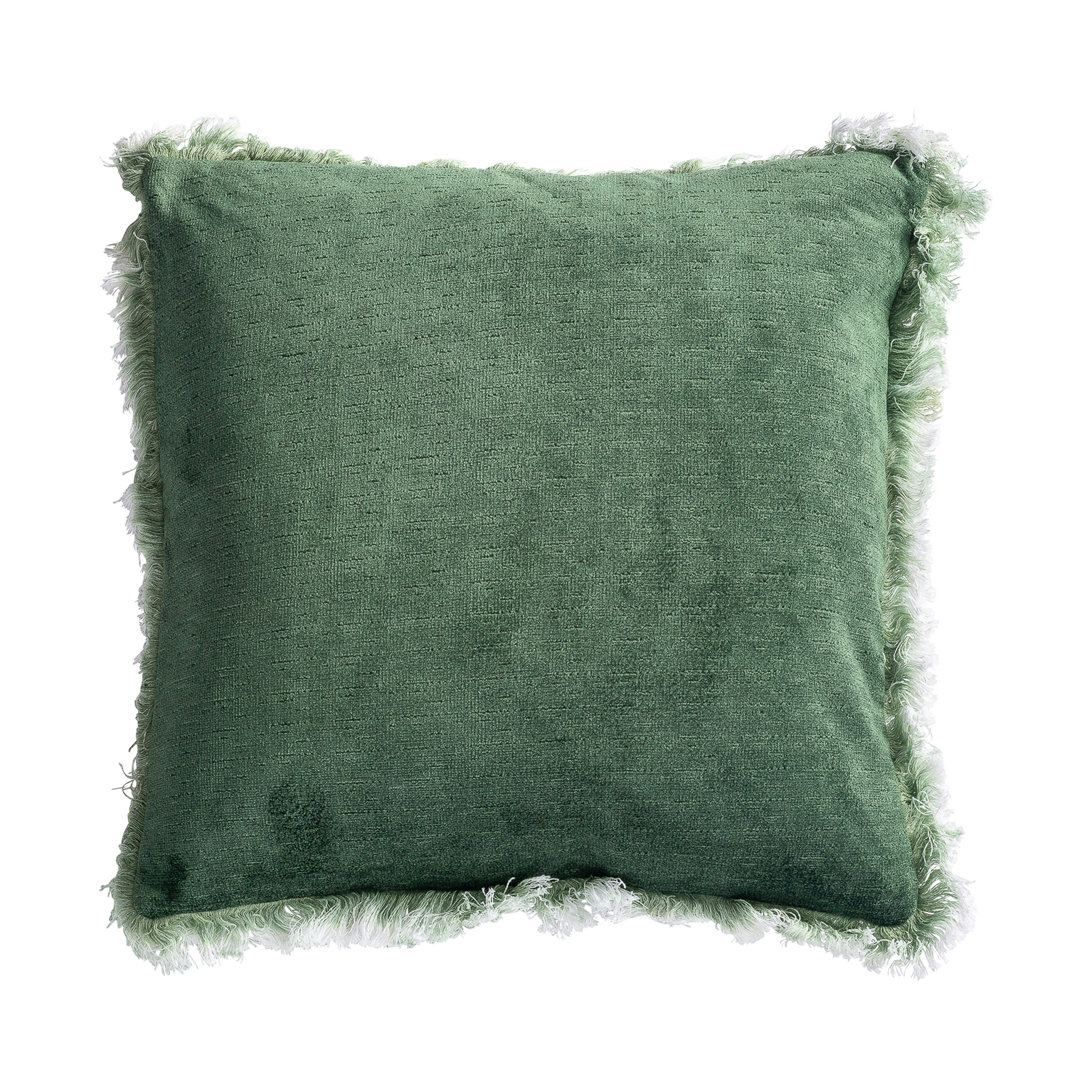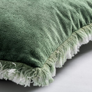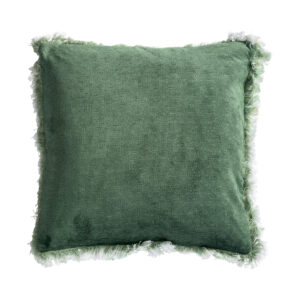 COJÍN CUADRADO IRFAN, EN COLOR VERDE, DE ESTILO CONTEMPORÁNEO. FABRICADO EN TERCIOPELO, COMBINADO CON PLUMAS.