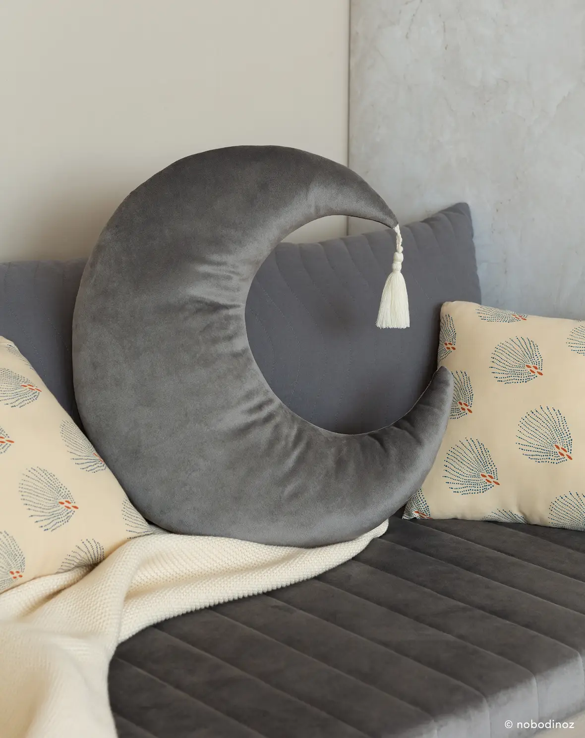 Un cojín suave con forma de luna que te llevará a un universo mágico, bajo la luz de la luna…