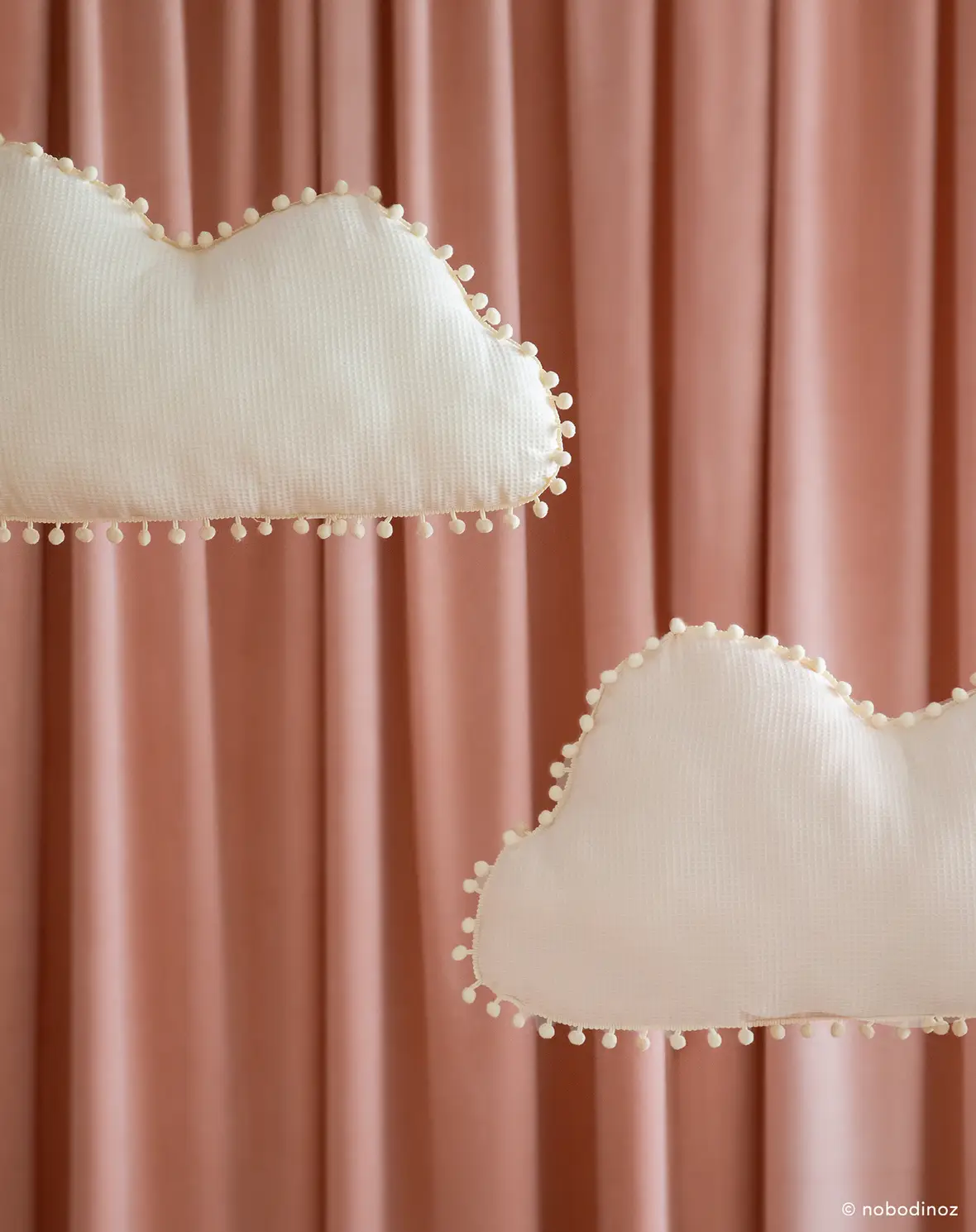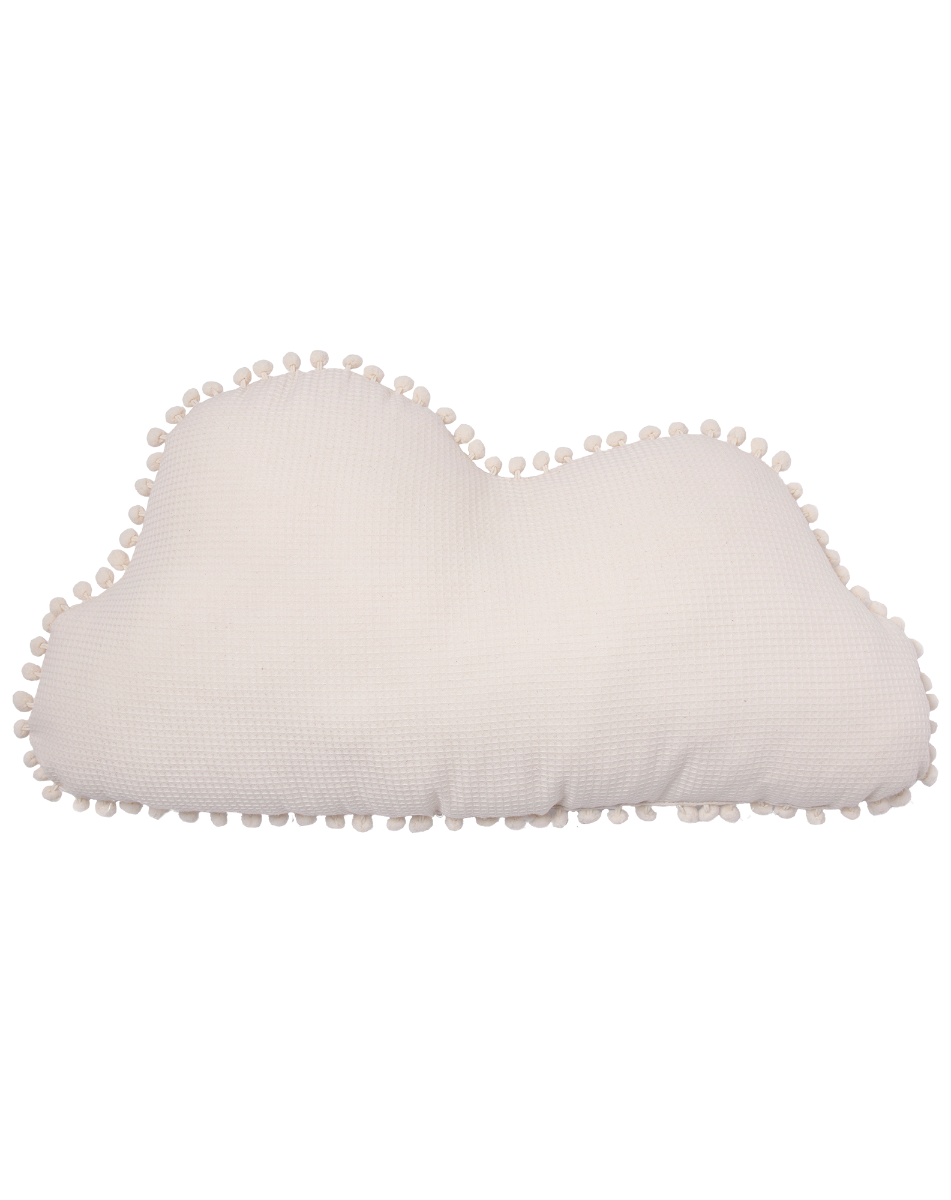 Gracias a su tejido en nido de abeja y su detalle de elegantes pompones, tus hijos podrán experimentar diferentes texturas y desarrollar sus sentidos. ¡El cojín Marshmallow dará frescor a tu decoración!
