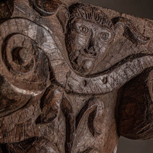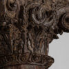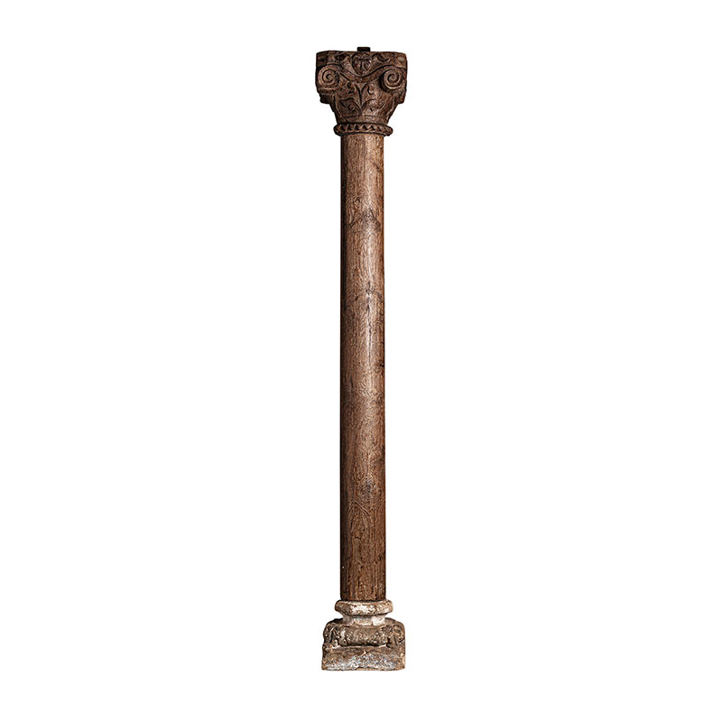 Columna Byron de estilo étnico fabricado en madera antigua en color marrón con acabado envejecido combinado con piedra.