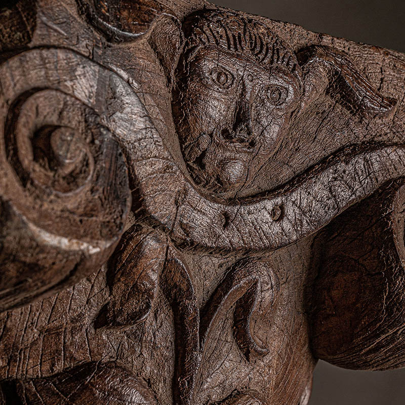 Columna Gea de estilo étnico fabricado en madera de teka en color beige con acabado envejecido.
