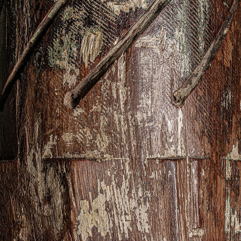 Columna Baraka de estilo étnico fabricado en madera de teka en color marrón con acabado envejecido. Producto desmontable.