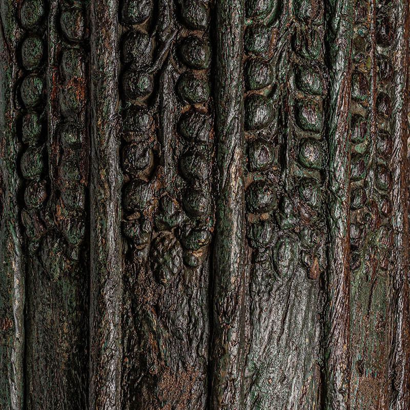 Columna Dasha de estilo étnico fabricado en madera de teka en color tonos en marrón con acabado envejecido.