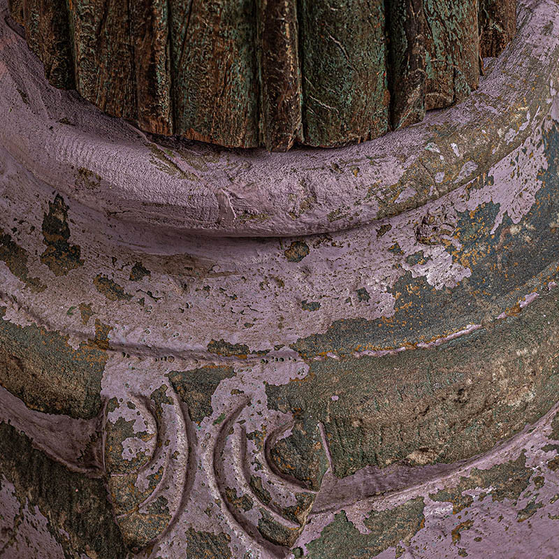 Columna cacia en color marrón envejecido de estilo étnico. Fabricado en madera de teka. Producto desmontable.