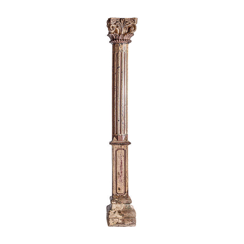 Columna Gea de estilo étnico fabricado en madera de teka en color beige con acabado envejecido.