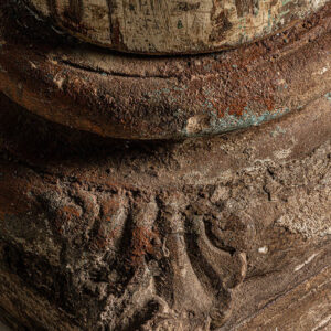 Columna gelue de estilo étnico fabricado en madera de teka en color marrón con acabado envejecido. Producto desmontable.