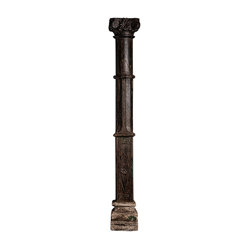 Columna Olinda de estilo étnico fabricado en madera de teka en color marrón con acabado envejecido. Producto desmontable.