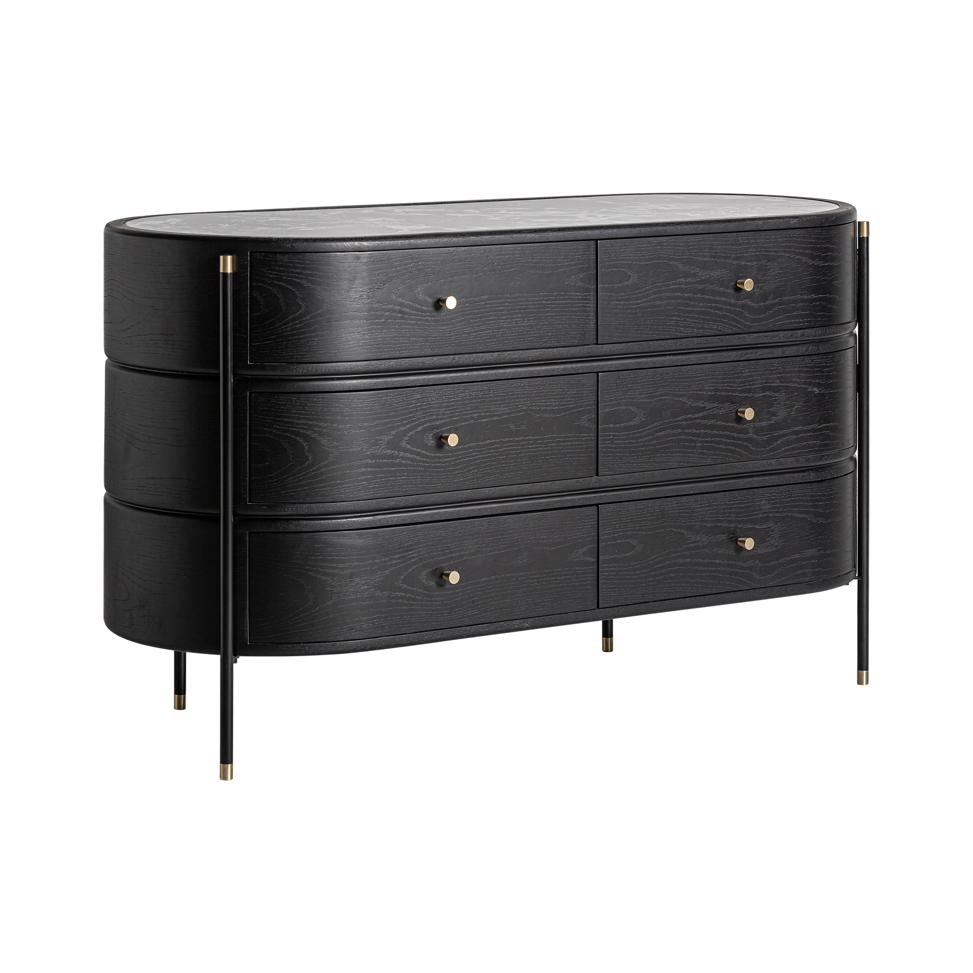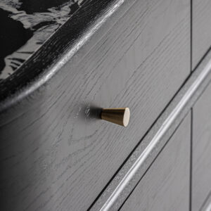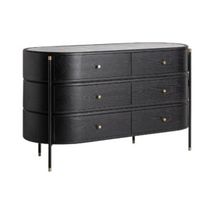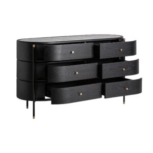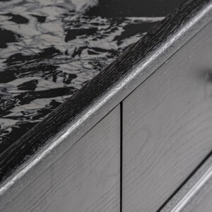 Cómoda bilzen de estilo contemporáneo fabricado en madera dm en color negro combinado con cerámica en color negro con acabado estampado y hierro en color negro.