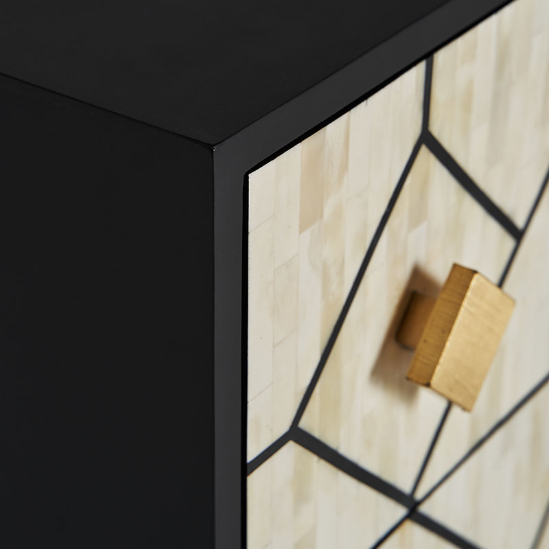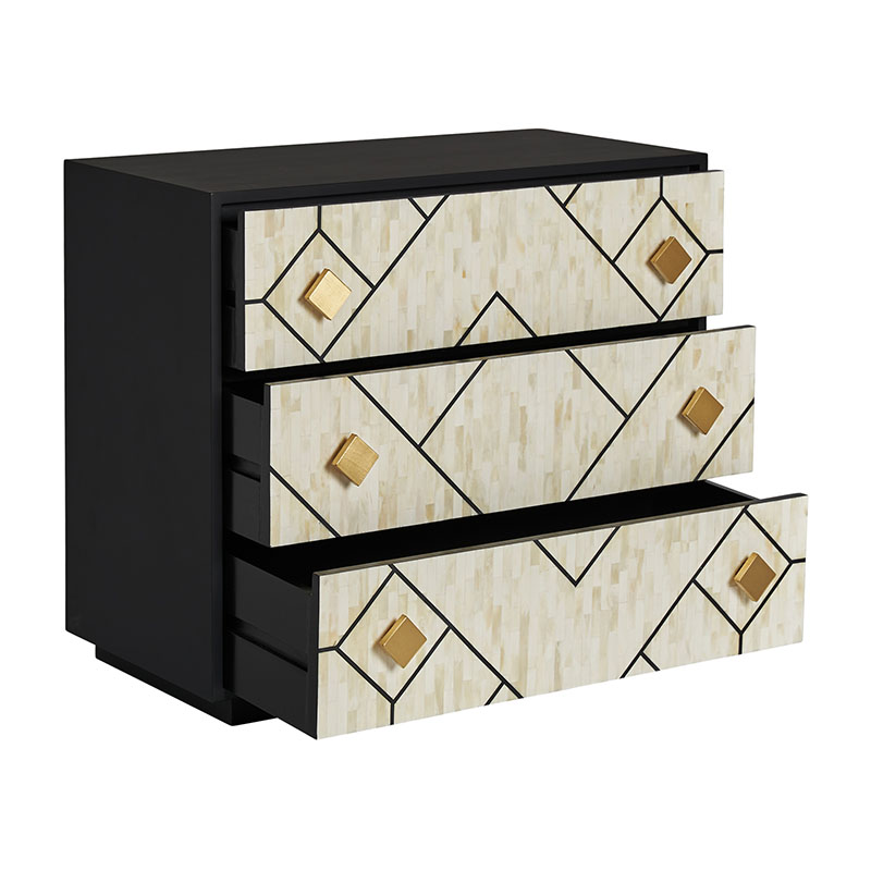 Cómoda charmes de estilo art deco fabricado en madera dm en color negro combinado con hueso en color blanco en color oro.
