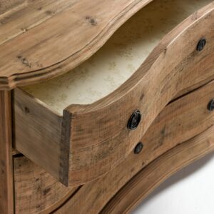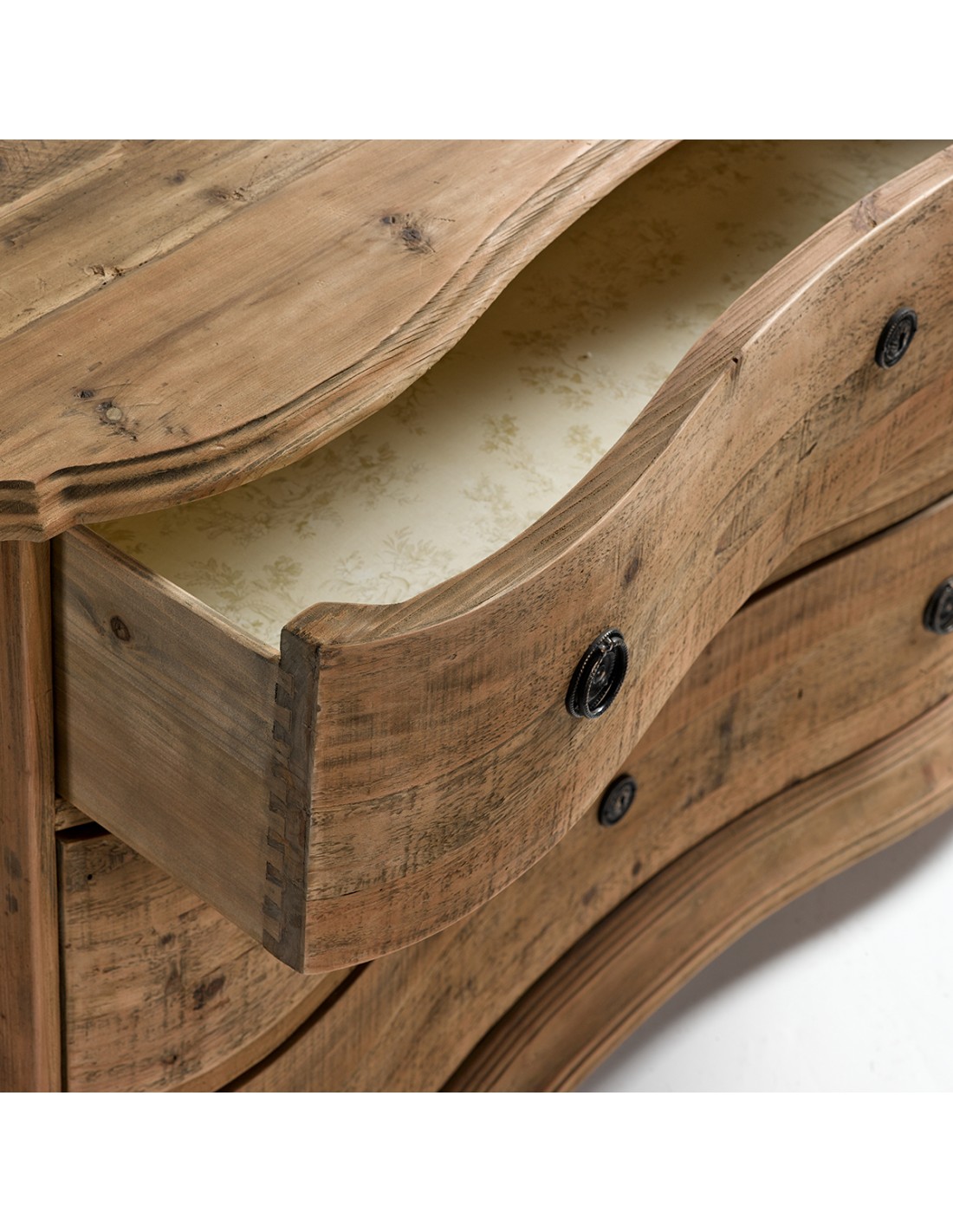 Mezcla perfecta para un mueble contemporáneo. Madera de pino con originalidad. Cómoda sorprendente para otorgar un aspecto moderno. Esta cómoda de madera de pino es ideal para tu dormitorio o como mueble de entrada. Muy cómoda para dejar las llaves y el correo. En la parte superior, pon los objetos decorativos que más te gusten. ¡Es ideal! Crea un ambiente lleno de confort.