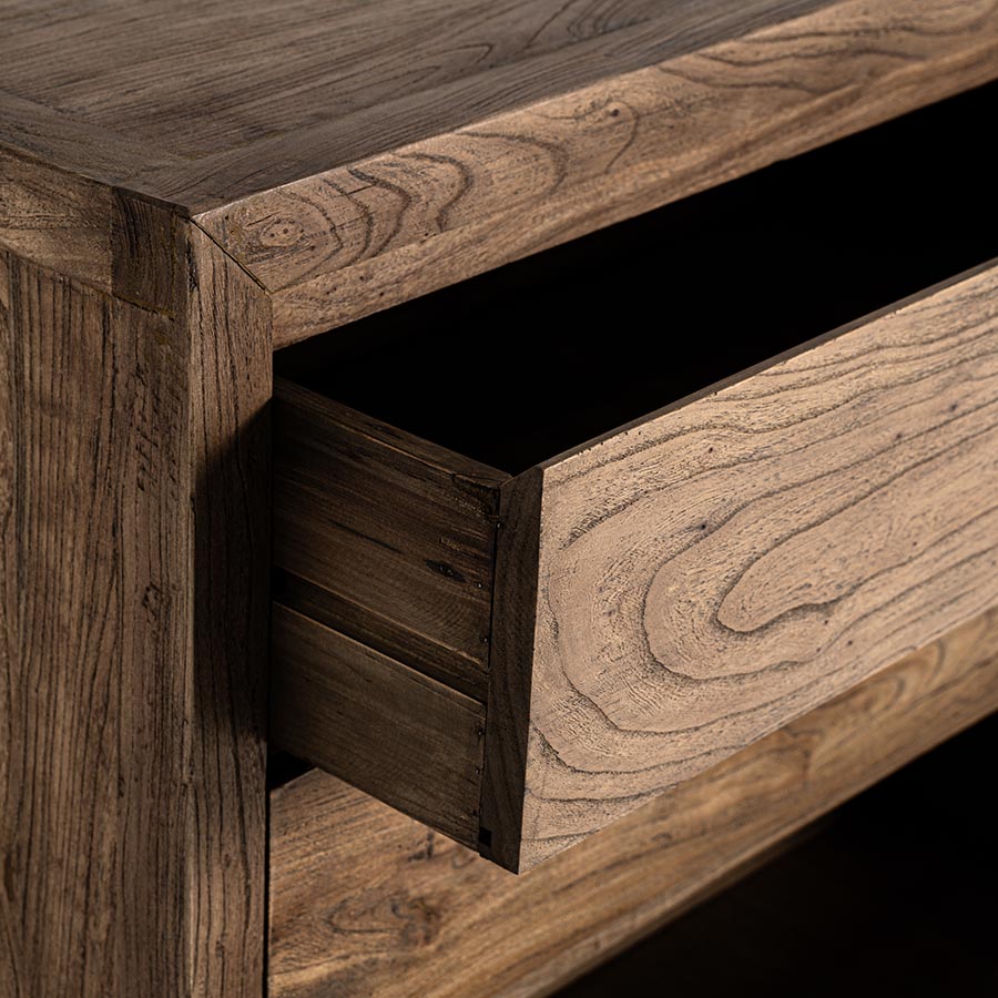 Cómoda Norvik de estilo contemporáneo fabricado en madera de olmo en color marrón.