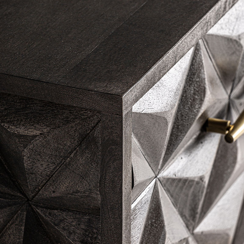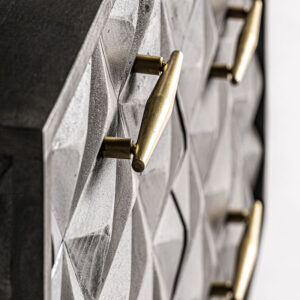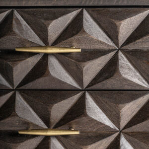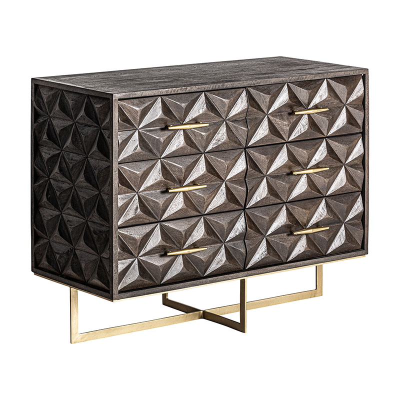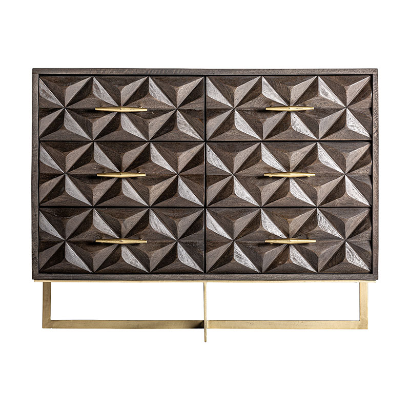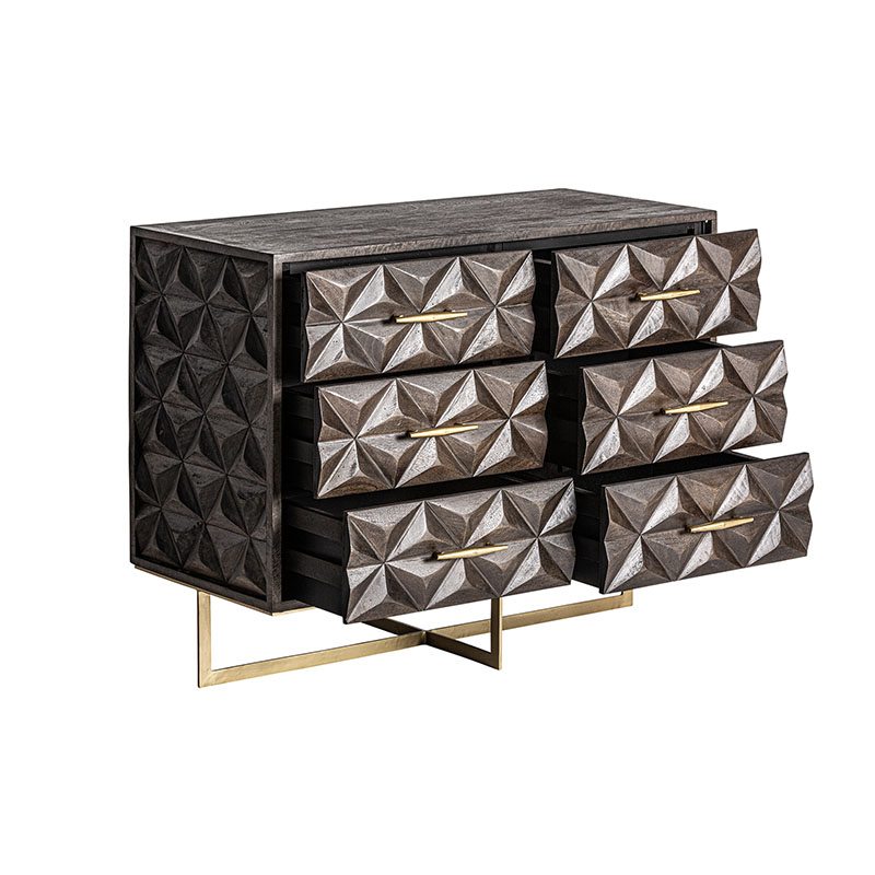 Cómoda tully, de estilo art deco. Fabricado en madera de mango, en color marrón, combinado con latón, en color oro.