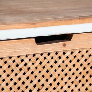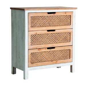 La cómoda Zael de Lastdeco es un icono del estilo nórdico por su calidez y diseño. Está elaborada en madera de abeto de color natural y blanco y se compone de tres cajones con una estructura de rejilla en la parte frontal. Una pieza sencilla pero con estilo para combinar en el dormitorio.