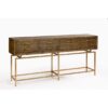 Consola glees de estilo art deco fabricado en madera de mango en color crema combinado con hierro en color oro y latón. Producto desmontable.