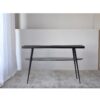 Consola Valbruna de estilo art deco fabricado en madera dm en color oro con acabado revestimiento de latón combinado con mármol en color negro con acabado texturizado y hierro en color negro con acabado revestimiento en polvo negro. Producto desmontable.