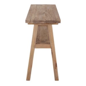 Consola rectangular fabricada en madera maciza de pino reciclada con balda inferior.