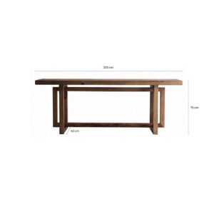 Consola hemye de estilo contemporáneo, fabricado en madera de pino reciclado en color marrón. Producto desmontable.