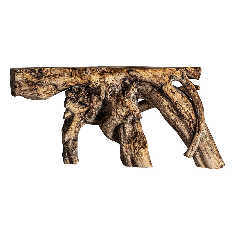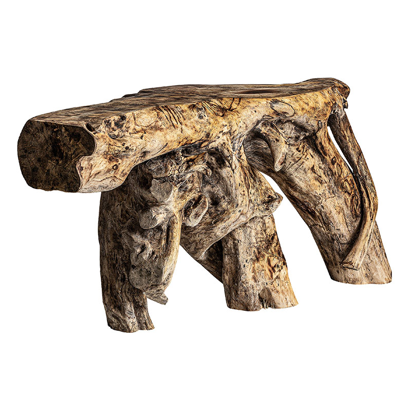 Consola ikaria, en color marrón envejecido, de estilo étnico. Fabricado en madera suar.